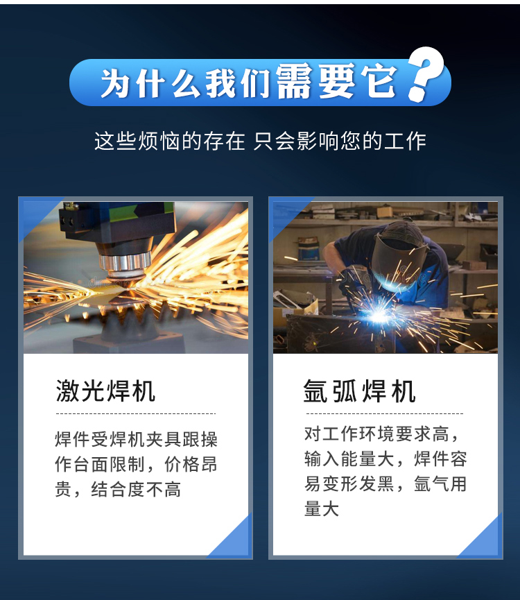 該設(shè)備體積小、功率大、效率高,針對(duì)傳統(tǒng)行業(yè)對(duì)焊工的高要求水準(zhǔn),該焊機(jī)對(duì)無(wú)操作經(jīng)驗(yàn)者均可快速上手,焊點(diǎn)呈現(xiàn)銀白色,后期無(wú)需打磨拋光。